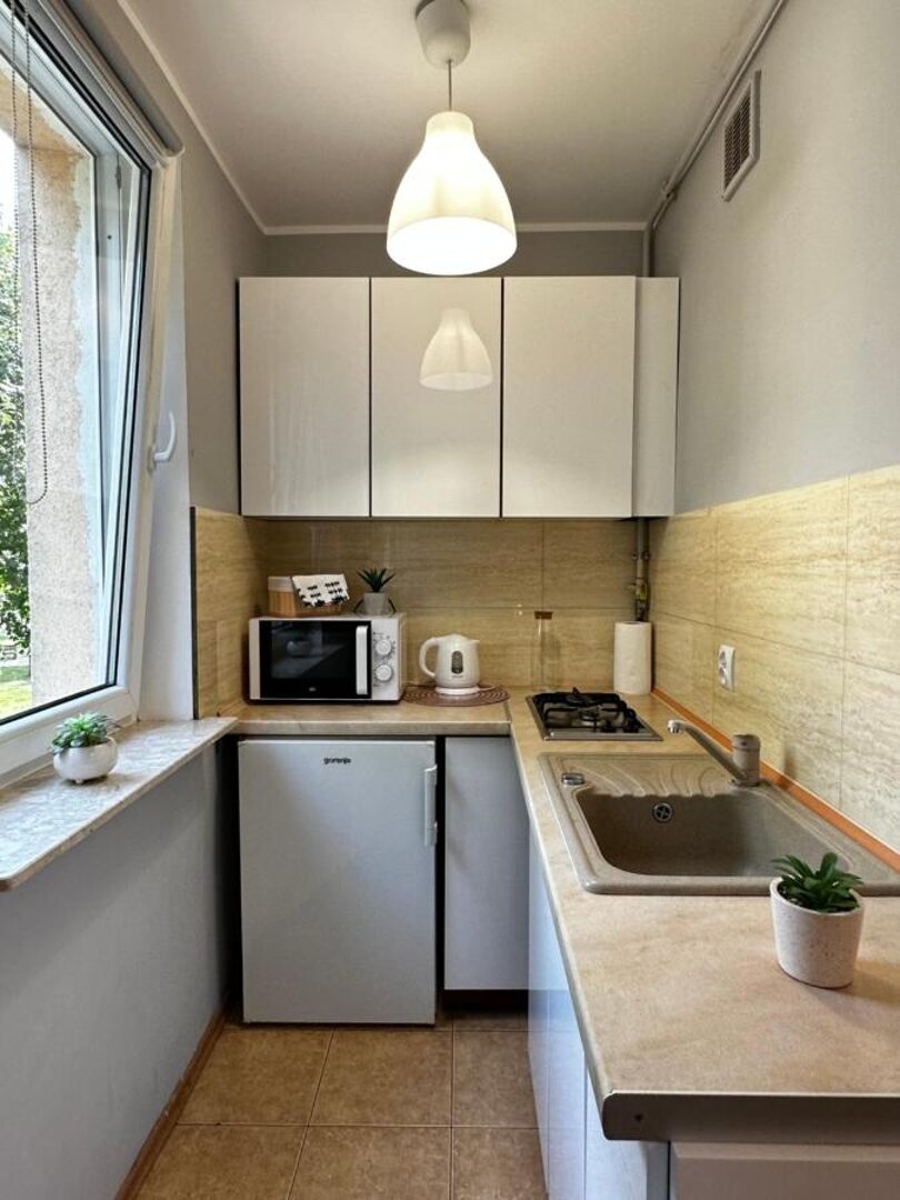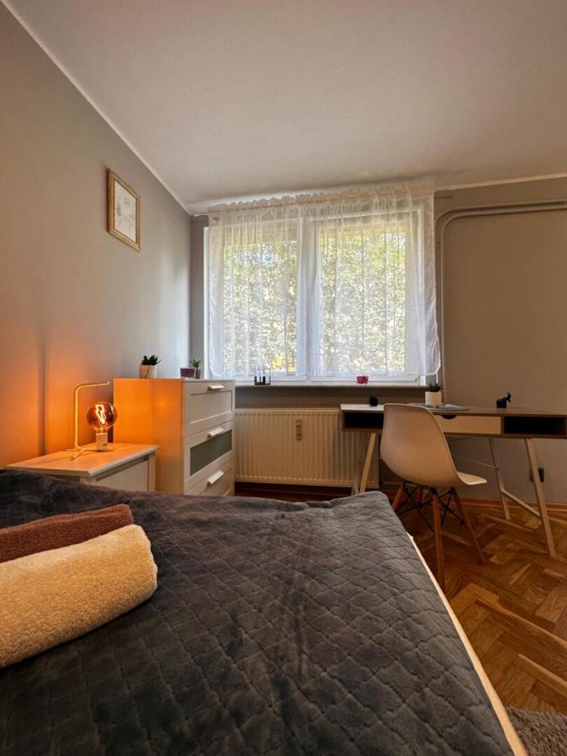 Jest to nowocześnie urządzone i przytulne cztero-pokojowe mieszkanie wyposażone w najpotrzebniejsze przedmioty. We wspólnej kuchni goście znajdą wszystkie niezbędne przedmioty to przygotowania oraz konsumpcji posiłków.