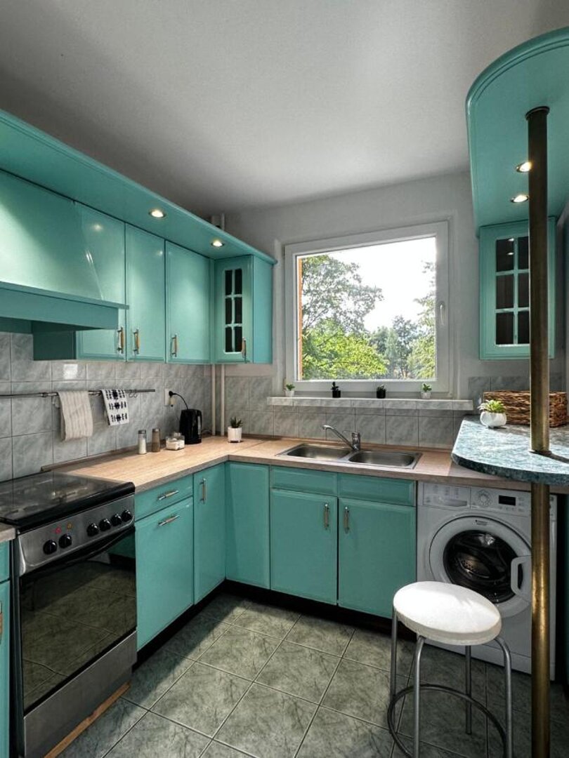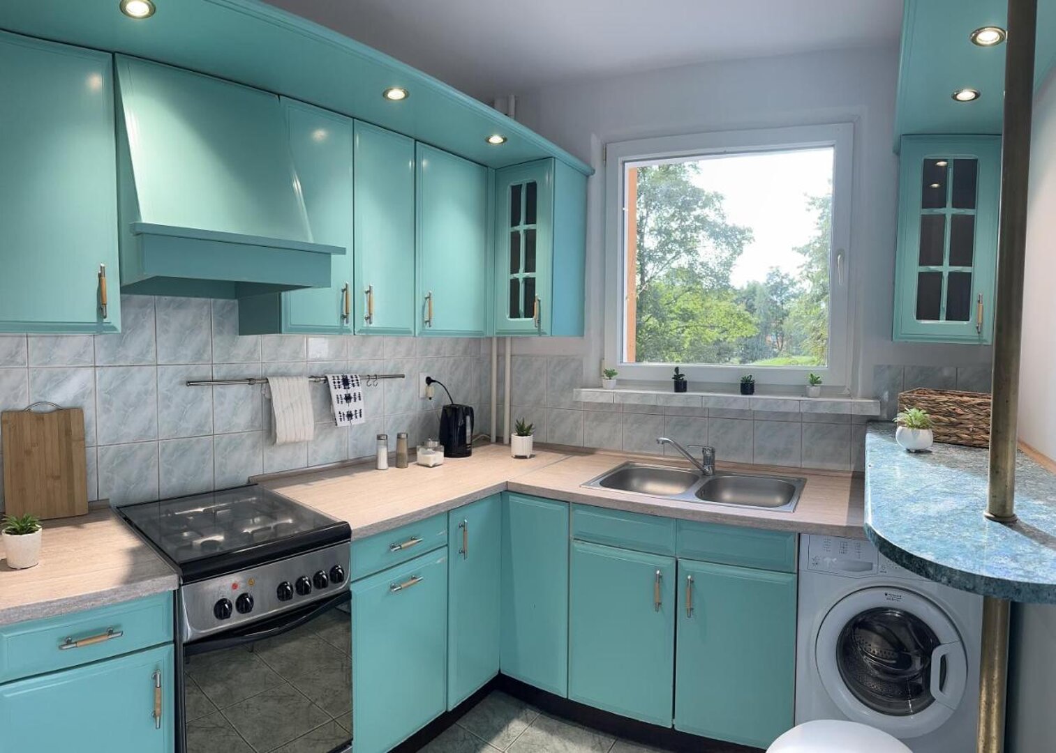 Jest to nowocześnie urządzone i przytulne cztero-pokojowe mieszkanie wyposażone w najpotrzebniejsze przedmioty. We wspólnej kuchni goście znajdą wszystkie niezbędne przedmioty to przygotowania oraz konsumpcji posiłków.