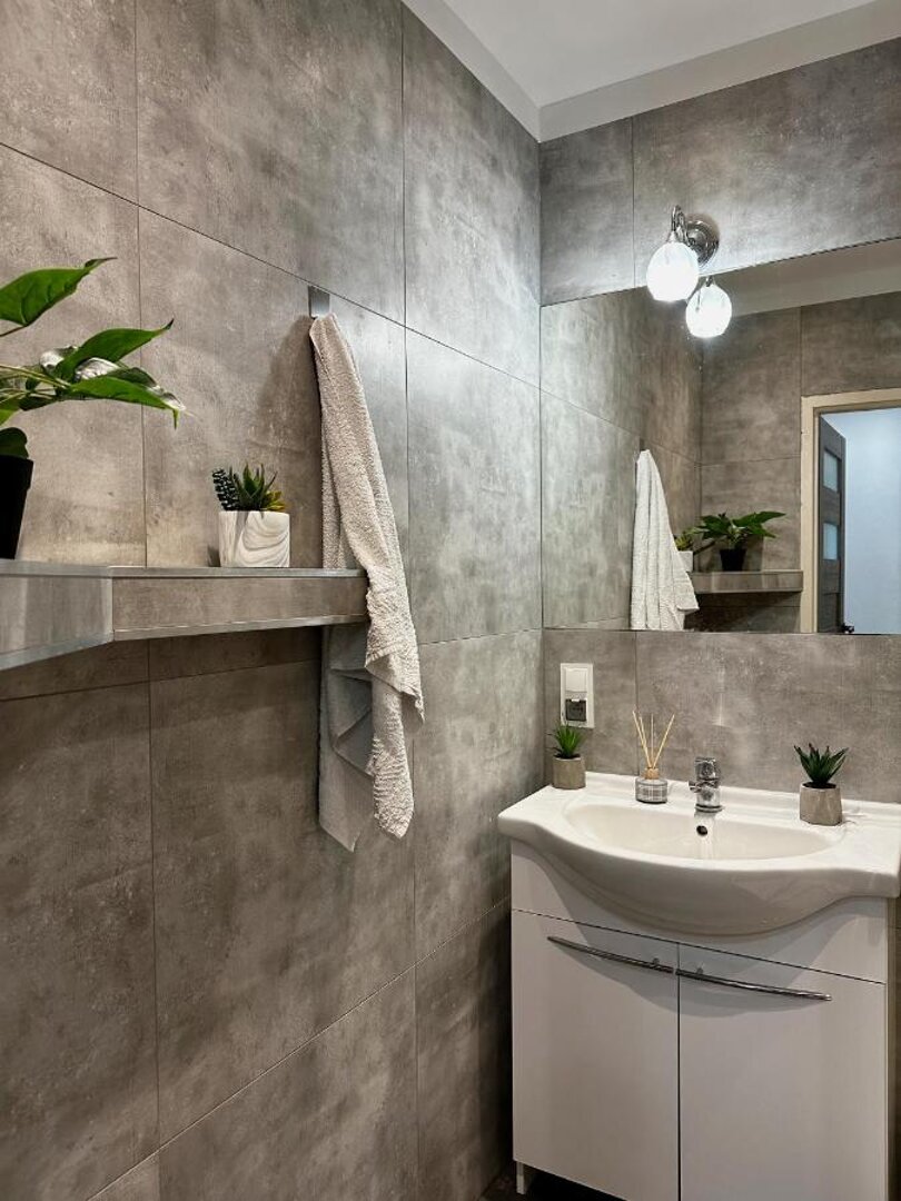 Jest to nowocześnie urządzone i przytulne cztero pokojowe mieszkanie wyposażone w najpotrzebniejsze przedmioty. We wspólnej kuchni goście znajdą wszystkie niezbędne przedmioty to przygotowania oraz konsumpcji posiłków. W obiekcie znajduje się również wspólna łazienka z oddzielną strefą WC. W pokojach zawsze czeka zaścielone łóżko wraz z świeżą i pachnącą pościelą.